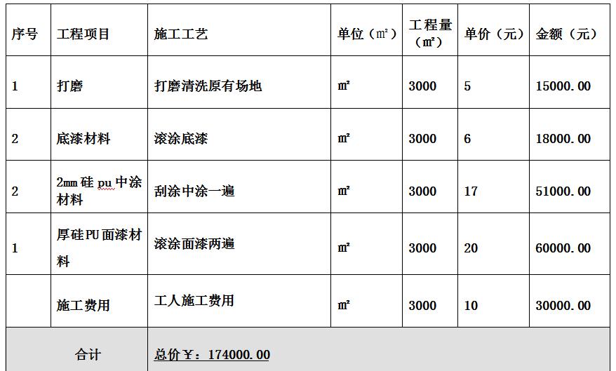 硅pu籃球場施工報價單僅供參考,實際造價可能會更低或更高。