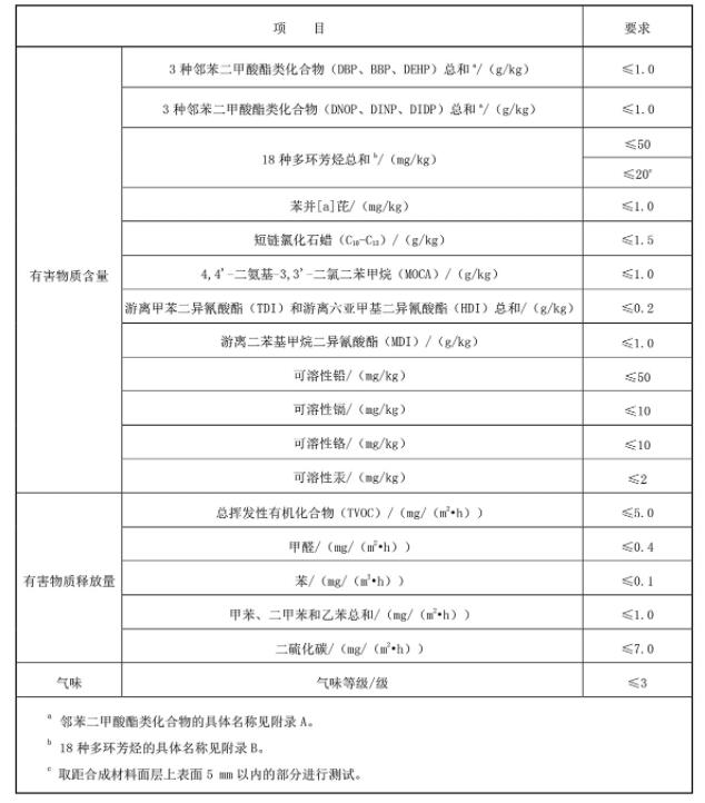5.6 合成材料面層成品和原料中有害物質限量及氣味