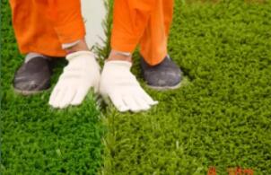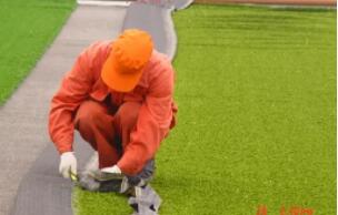 將兩邊草皮對齊拼合,膠粘于接縫布