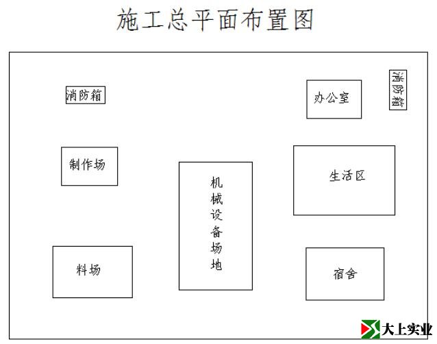 2、施工總平面包括項(xiàng)目部臨時(shí)辦公室、料場(chǎng)、加工區(qū)、