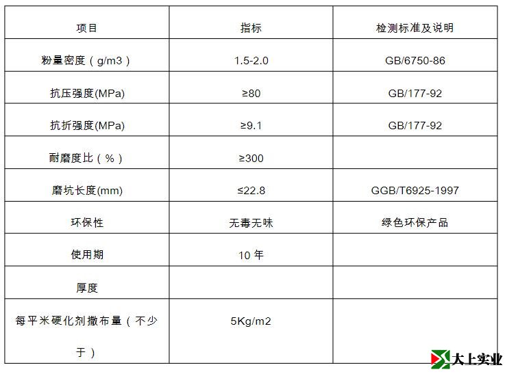 12.金剛砂地面技術(shù)指標(biāo)