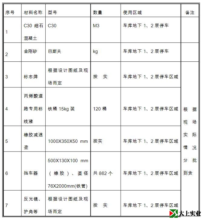 5、招標(biāo)范圍:地下車(chē)庫(kù)地坪及交通標(biāo)示系統(tǒng)工程(包括地下車(chē)庫(kù)地坪、交通標(biāo)示標(biāo)牌工程等),包括但不限于以下內(nèi)容:停車(chē)位、通道及防滑坡道的細(xì)石混凝土澆搗(含混凝土切縫及材料二次轉(zhuǎn)運(yùn)等,不含混凝土主材),混凝土激光整平、金剛砂耐磨地坪、液體密封固化劑施工及車(chē)庫(kù)劃線、交通標(biāo)示等 (具體范圍及工程量詳見(jiàn)招標(biāo)人發(fā)放的工程量清單、設(shè)計(jì)施工圖紙及地下室車(chē)庫(kù)地坪工程招標(biāo)技術(shù)方案)。