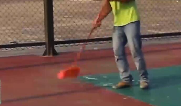 硅PU面層施工分為:按配比取料、上料、刮涂、消泡滾筒滾涂等工藝;