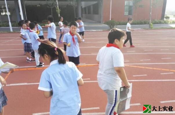 孩子們來到操場上,迅速按照前一天晚上各學習小組制定好的測量方案分小組開始對操場進行測量。