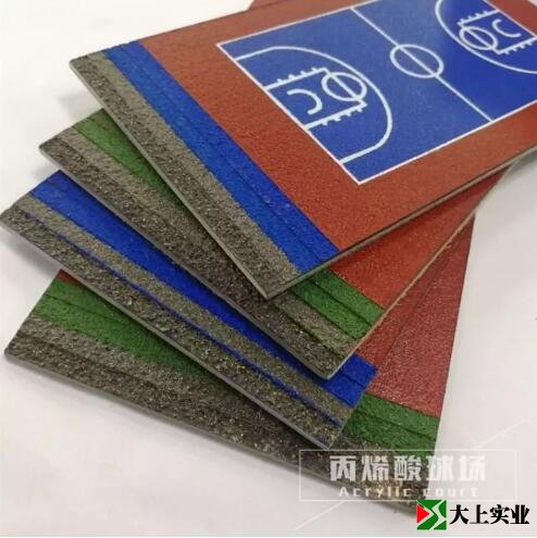 彈性丙烯酸:彈性丙烯酸在傳統(tǒng)丙烯酸底層添加了橡膠顆粒,面層采用純丙烯酸,總厚度為5mm,具有一定彈性,可有效保護(hù)運(yùn)動員的關(guān)節(jié)。