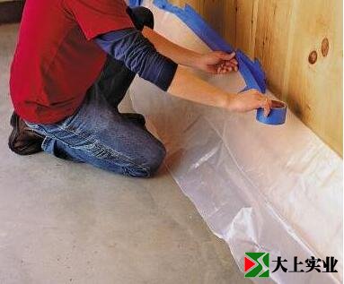 使用膠布把塑料布粘在周邊的墻壁上,以免墻比被弄臟