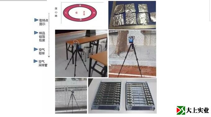 然后用鋁箔包裝跑道材料樣品,防止揮發(fā),防止傳輸過程中材料樣品被污染.其次,多點采集空氣樣品(教室、校外、操場).