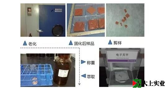 按照推薦性國家標準《合成材料跑道面層》對送檢試樣的要求,樣品應在固化14天后進行測試.因事情緊急,為更客觀地檢測操場情況,將樣品放入烤箱加速其固化,剪樣、稱重、萃取。