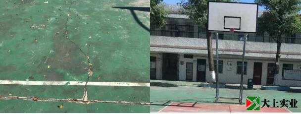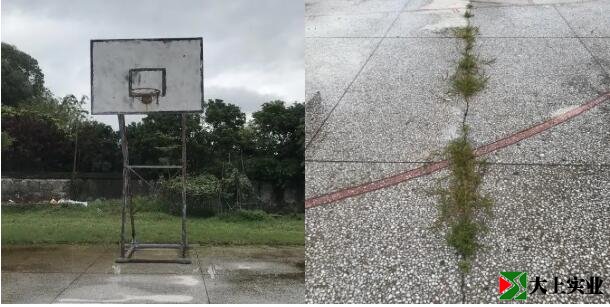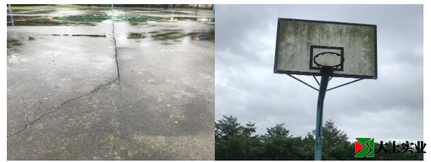 該?;@球場是多年前建設(shè)的,不符合現(xiàn)代籃球場標準。目前場地較為殘舊,地面裂縫較多,籃板陳舊變形。