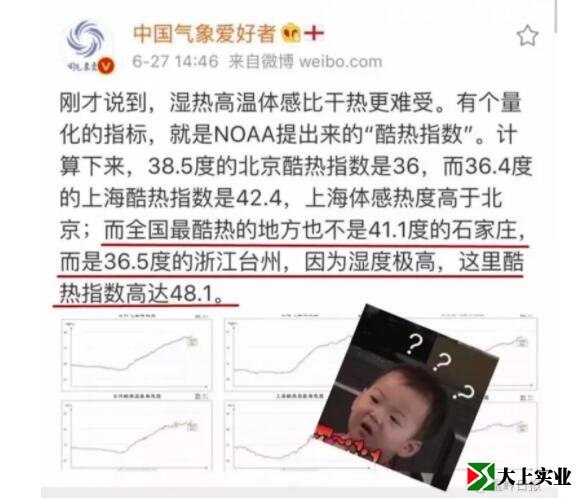 就在上周,由@中國氣象愛好者 敲板認(rèn)證,中國最熱的地方甚至不是41.1度的石家莊,而是36.5度的浙江臺州。因為對于體感來說,濕熱比干熱更難受。酷熱指數(shù)就是說綜合空氣溫度和相對濕度來確定人們真正感受到的熱度。