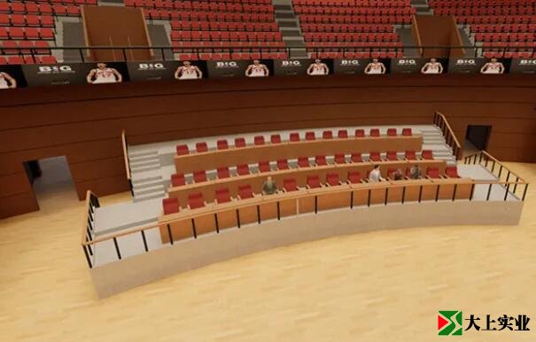 體育場館的主席臺規(guī)模為坐席數(shù)的0.5%-2%,其中首排應(yīng)考慮安放長條式主席桌、可移動帶扶手靠背椅及講話席,排距不小于2m。