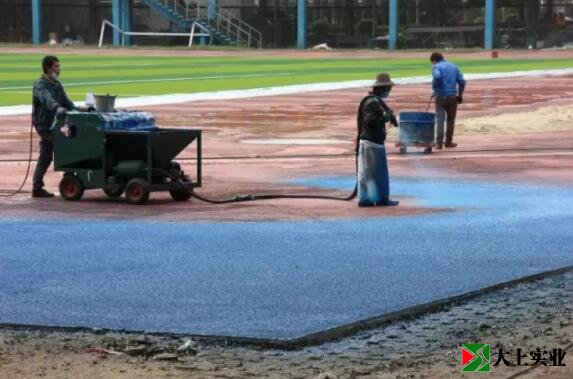 我們之前看到的紅色塑膠層是夾在中間增強彈性的,并不是跑道最終的樣子,而這幾天正在鋪藍(lán)色那層是最外面增大摩擦力的塑膠顆粒。