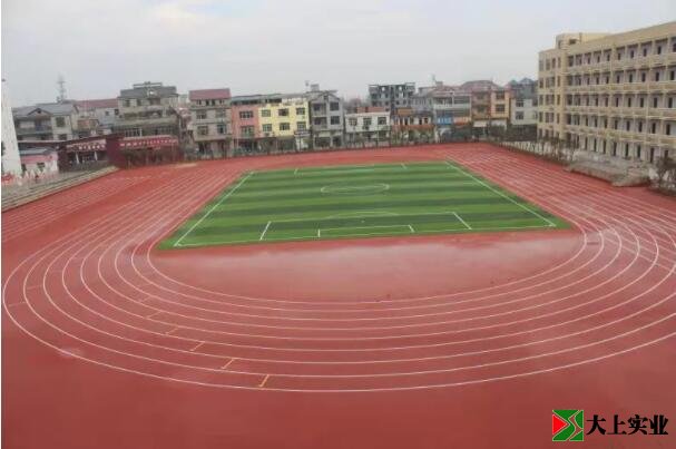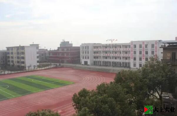 新建成的塑膠運動場,由8條跑道組成,以紅色為主色,綠色為輔色。中間是7人制的足球場,寬36米長51米。操場左側設有6道50米競速跑道,右側設有8道100米田徑跑道。除此之外,還包含跳遠運動的專用沙坑。操場基礎設施完備,基本上能滿足學校各種體育運動項目的需求。