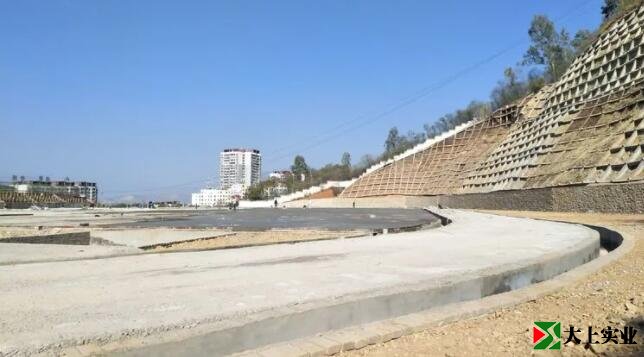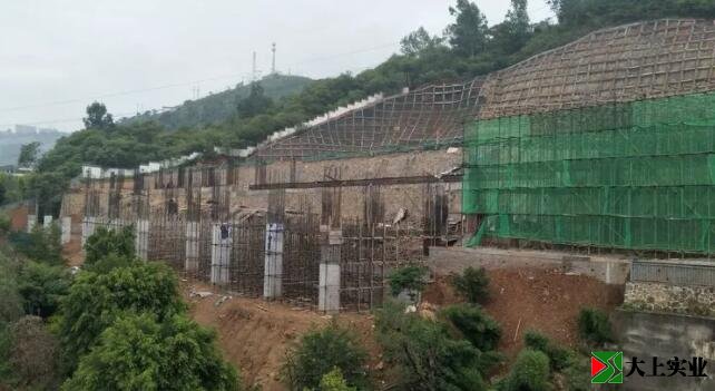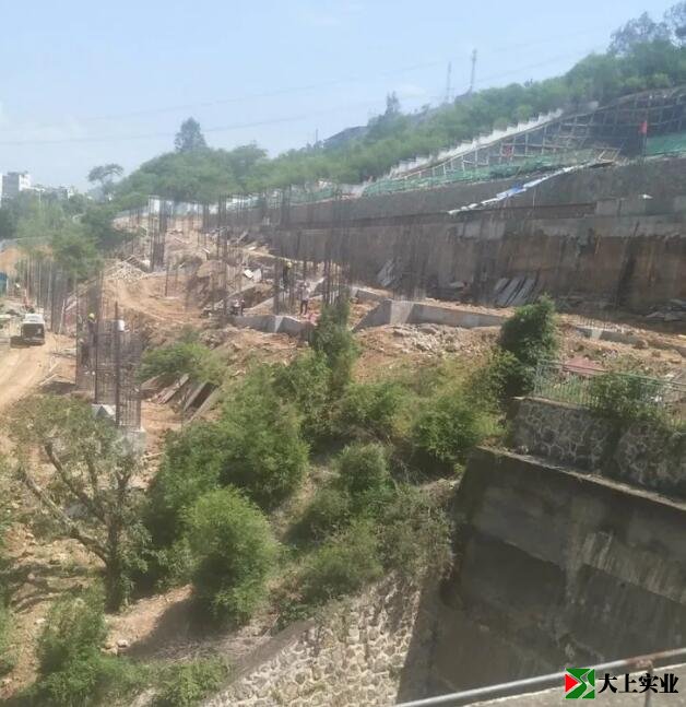 后山被新挖出的陡坡,長達290多米,平均高度近30米。為預防滑坡,投入大量資金,做龐大的空格梁護坡工程。晝夜施工,歷時四月。