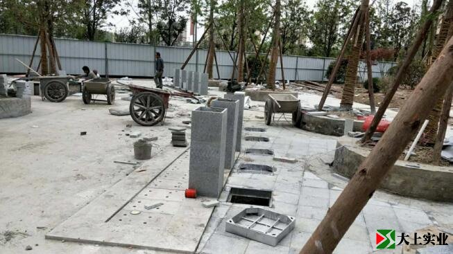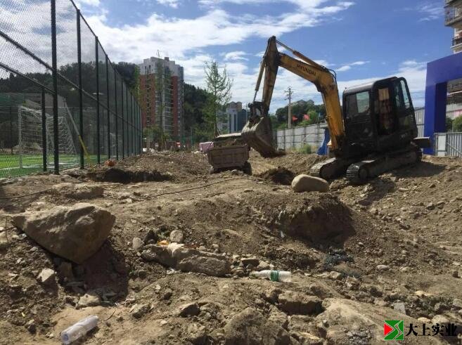 目前已完成園林景觀綠化完成綠化用地整理、起坡造型、樹池、喬木栽植、廊架旱噴砼澆筑、衛生間及服務用房基礎施工。園林鋪裝已完成園區道路砼墊層施工80%、電纜預埋90%、雨污管預埋95%、檢查井砌筑。足球場完成砼墊層施工、瀝青砼層施工、圍欄安裝、標線施工、球門安裝。