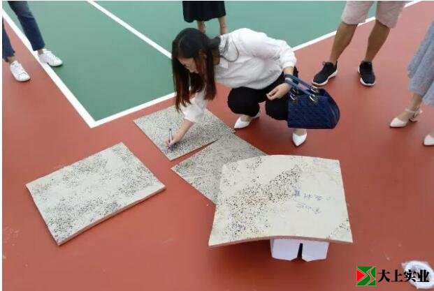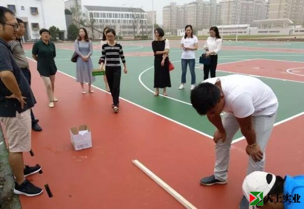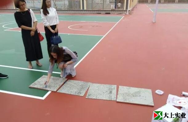緊接著,在現(xiàn)場負責(zé)人的帶領(lǐng)下,大家先后來到學(xué)校塑膠跑道籃球場地,參與塑膠跑道及籃球場的塑膠成品取樣。